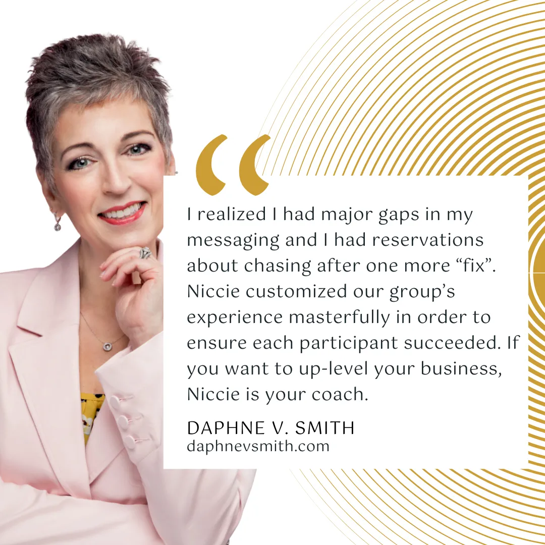 Private Sweetspot strategic session with Niccie to lay out your business plan—unique offer, proprietary systems, branding, and products.